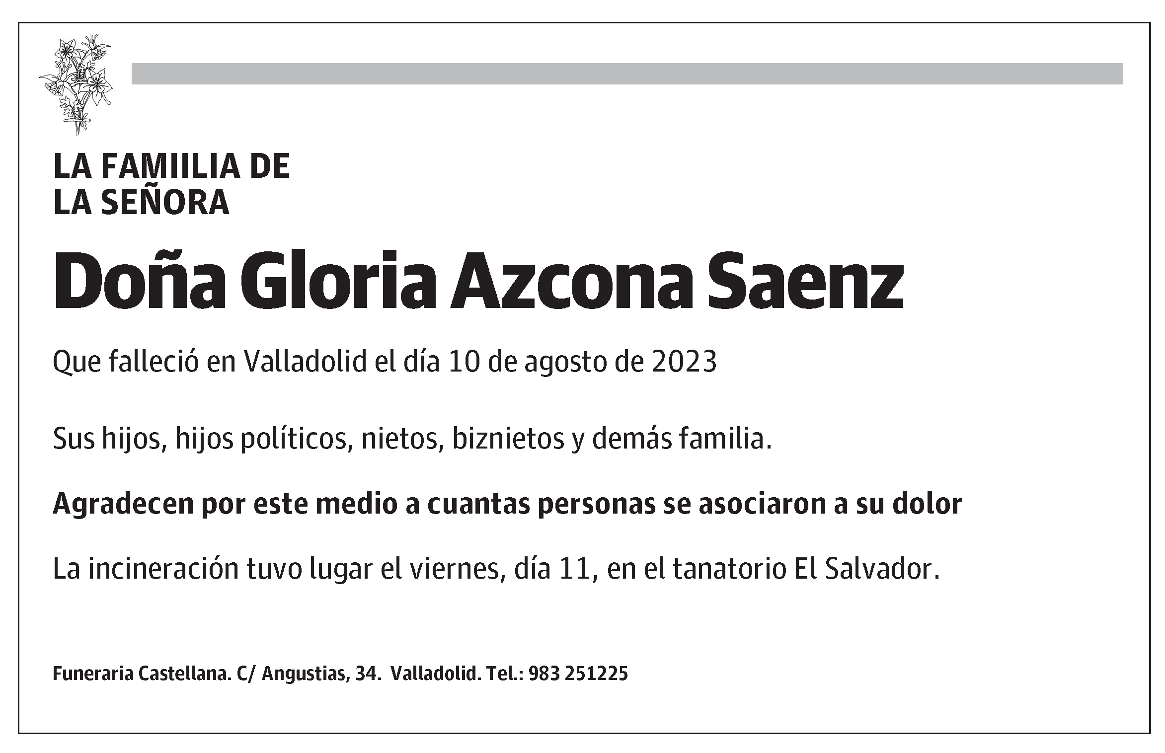 Que falleció en Valladolid el día 10 de agosto de 2023