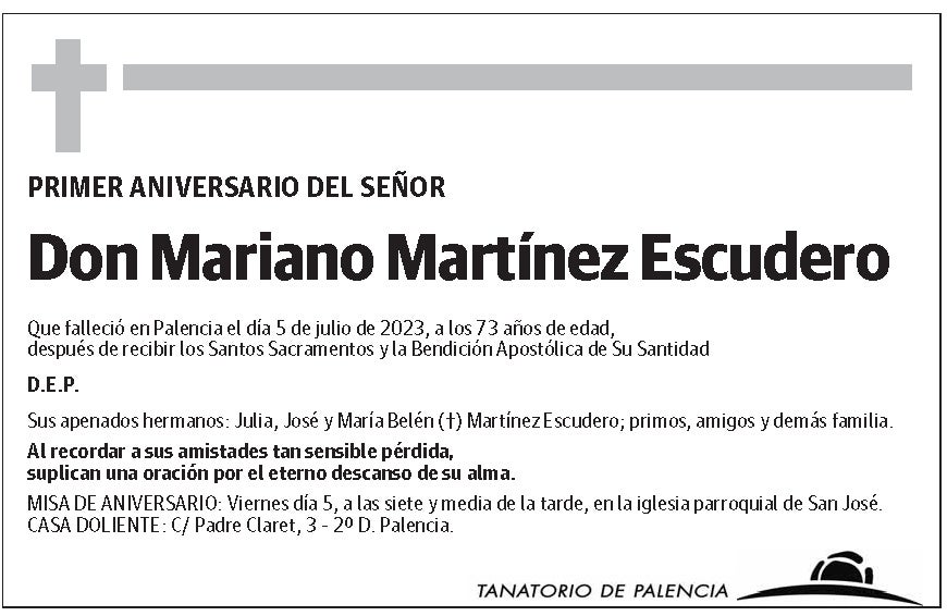 Que falleció en Palencia el día 5 de julio de 2023, a los 73 años de edad, después de recibir los Santos Sacramentos y la Bendición Apostólica de Su Santidad