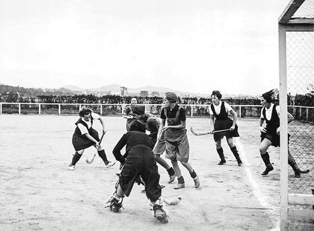 La burguesía textil catalana fue la impulsora del hockey sobre hierba en España. Y Terrassa, plaza principal: allí nació, en 1902, el primer club y en 1952 ya había tres grandes clubes en la ciudad. Fue un deporte abierto a las mujeres desde el principio.