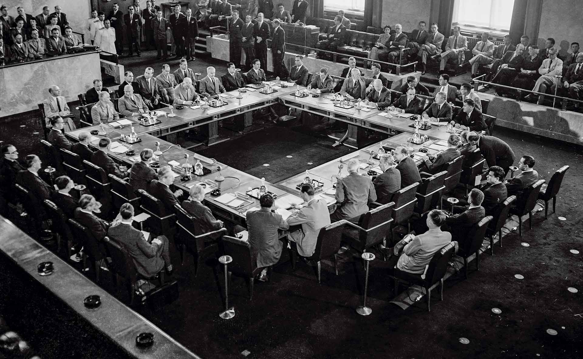 Durante 73 años se han vigilado, amenazado y espiado, aunque nunca han combatido de manera directa. Sus respectivas historias están tan entrelazadas que no se entiende la una sin la otra. Lo que pocos saben es que también se han cortejado, como en la Cumbre de los Cuatro Grandes, en la imagen superior, en Ginebra, en 1955. Desde arriba a la derecha, en el sentido de las agujas del reloj, se ve a los representantes de Estados Unidos, Francia, Gran Bretaña y la Unión Soviética.