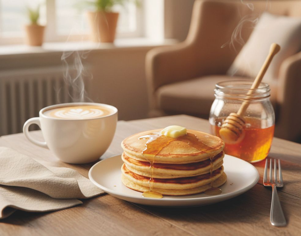 «Tomo un par de tortitas con mantequilla –a veces con miel–, y un café con leche entera de vaca feliz».